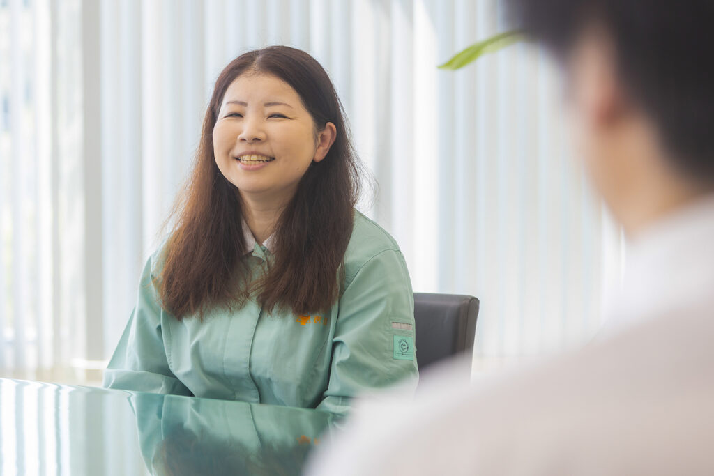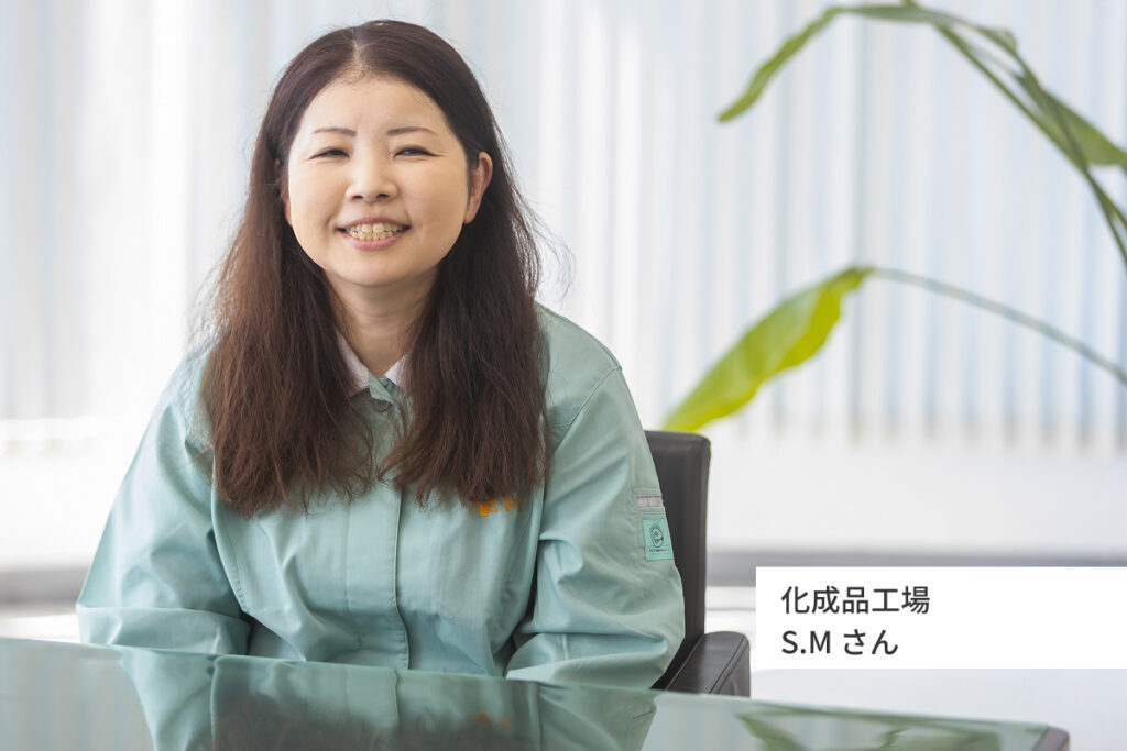 子どもが小さかった頃は、夜中も子どもに付き合ったり、子どもの急な発熱で看病が必要だったりと、体力的に大変でした。工場長をはじめ上司・同僚のサポートがあり、乗り切ることができました。相談をすると、寄り添ってくれる環境だと実感しました。その期間に限らず、職場は穏やかな雰囲気で、共に働く皆さんに感謝しています。
